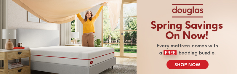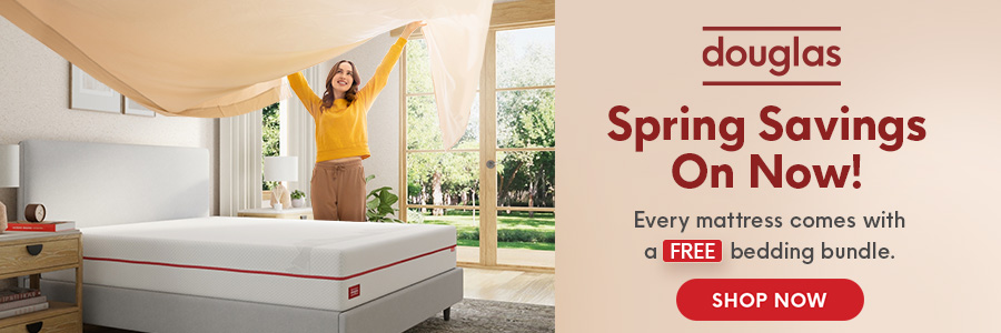 SPRING SAVINGS EVENT! Buy any Douglas mattress today and get a FREE Comfort Sleep Bundle + Duvet Set, Up to 25% OFF Bed Frames, and 15% OFF All Accessories. See website for details >