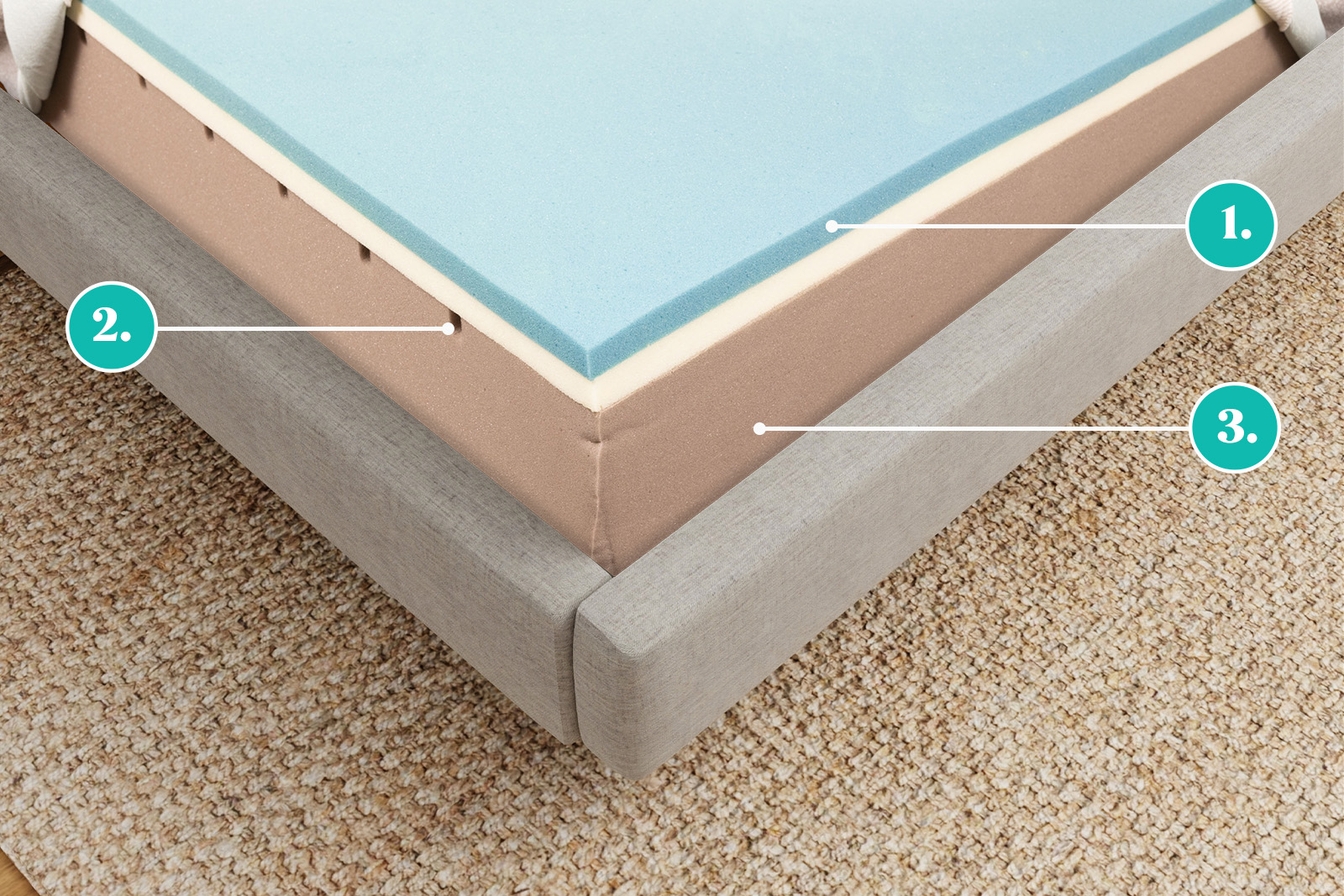 - 1st Layer: The top (comfort layer) is 1" of cooling gel memory foam. This layer conforms the most to your body as you lie on the mattress, and helps to dissipate your body's heat.