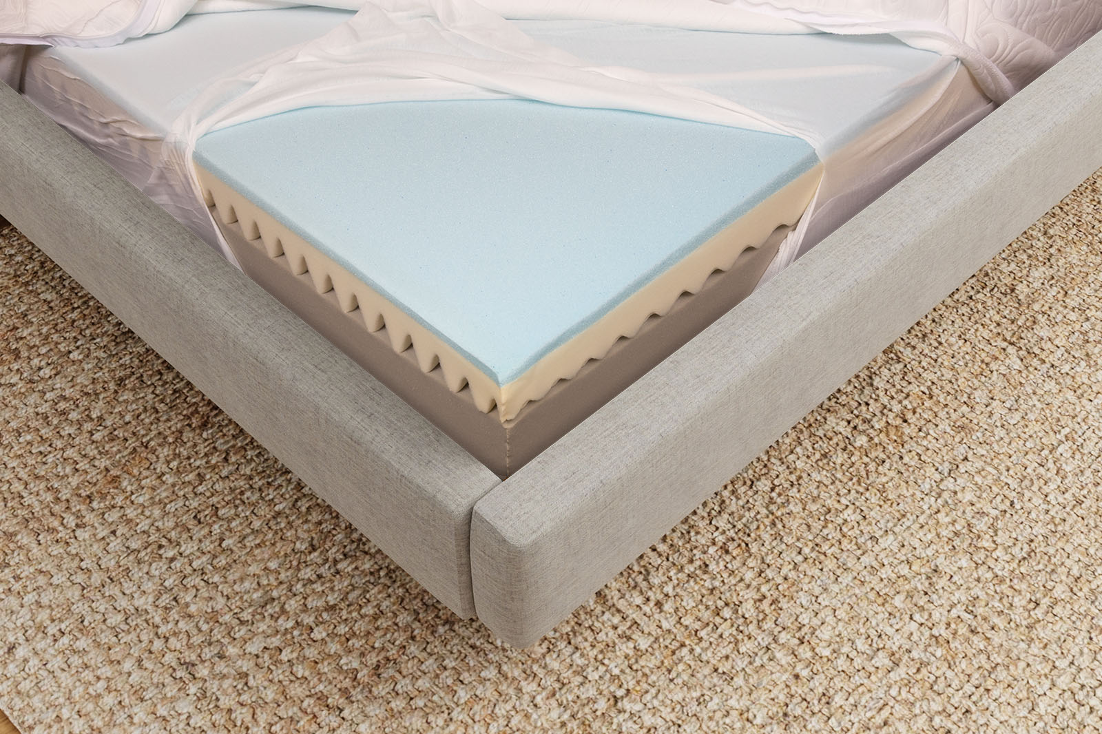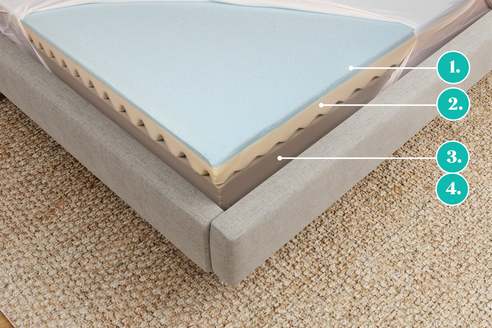 - 1st layer: A 0.75" gel memory foam designed to contour gently to the body, helping to relieve pressure points. It is infused with cooling gel and provides a light temperature-regulating effect to prevent heat buildup during sleep.