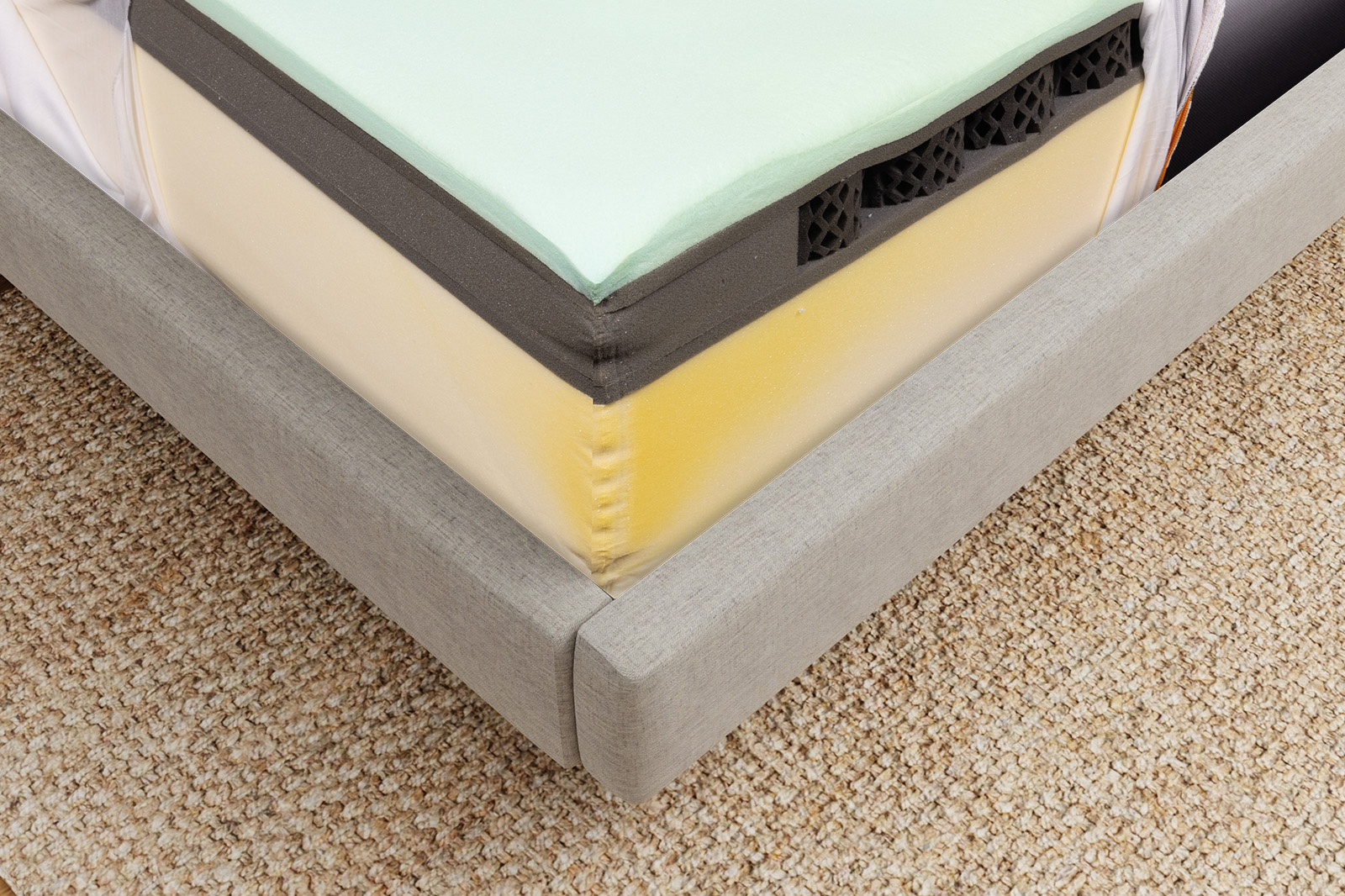 - 1st Layer: 1″ of Dormeo's recovery foam. This polyurethane memory foam contours to the shape of your body as you lie on the mattress.