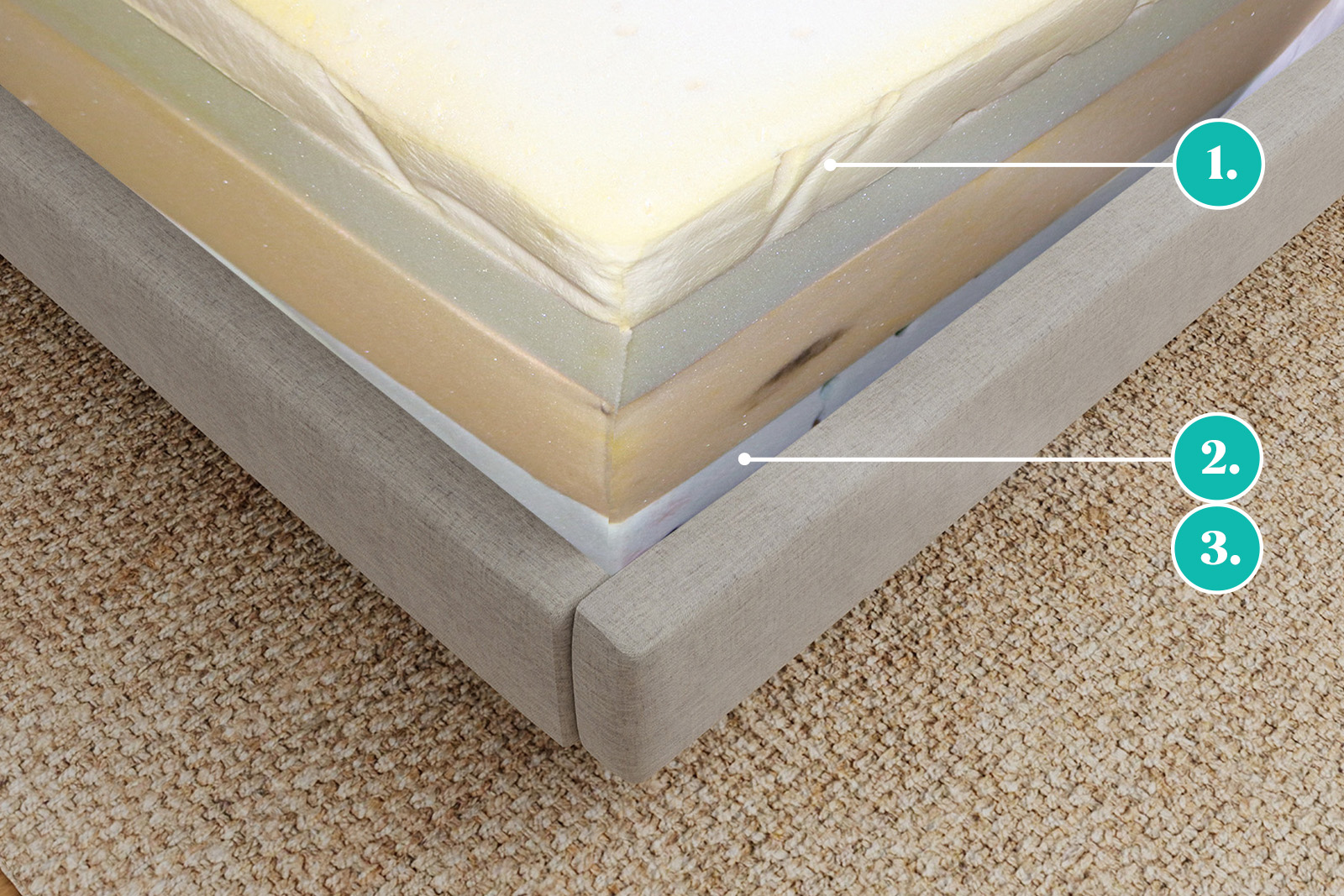 The layers listed below presume that the "top" layer is the Firm side of the mattress. Flipping the mattress reverses the order to create the firmness comfort level.