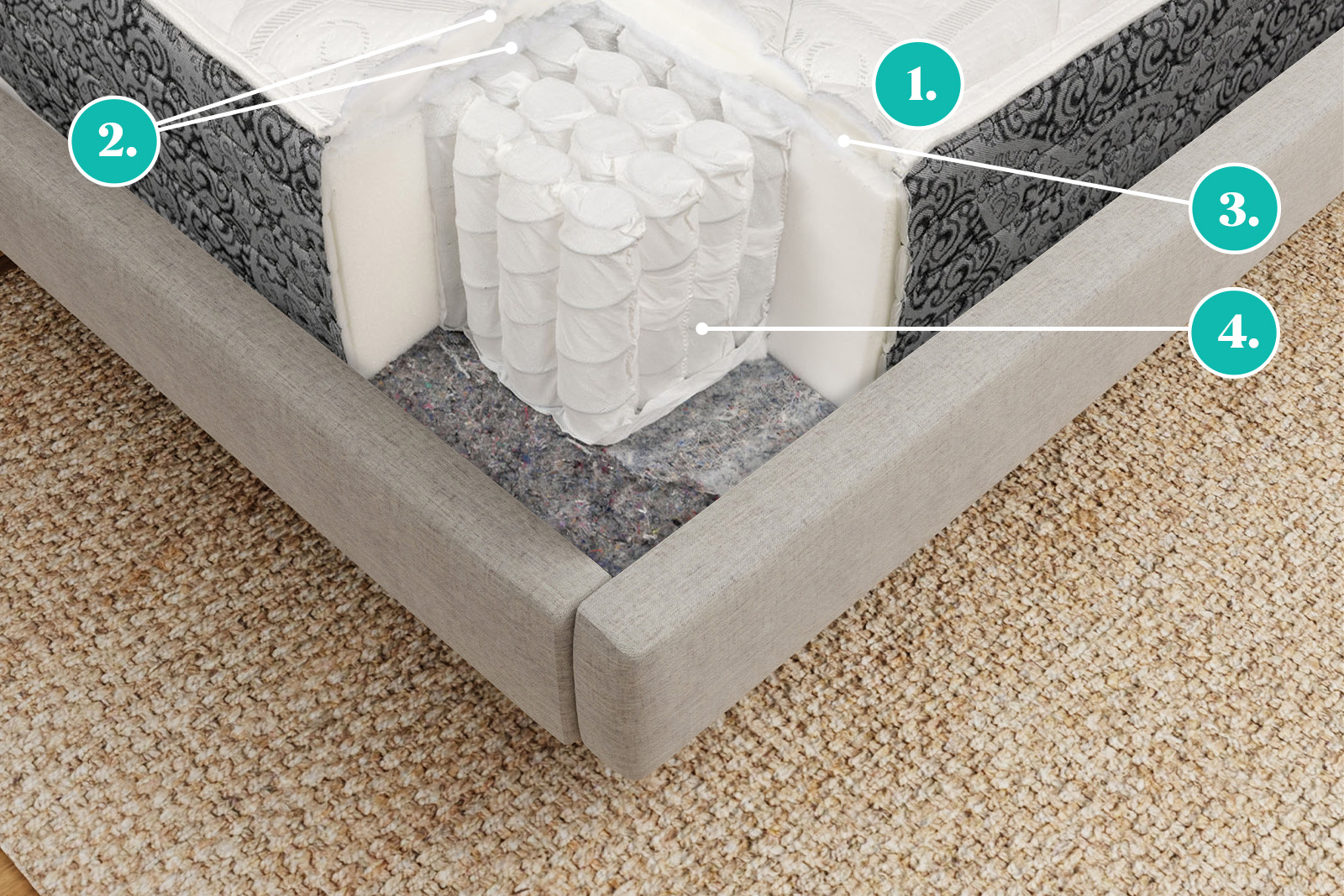 This mattress builds up to 2" of transition and comfort materials in small increments. These layers add cushioning so you don't feel the support system underneath.
