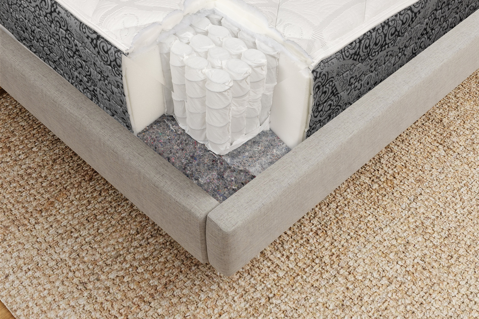 This mattress builds up to 2" of transition and comfort materials in small increments. These layers add cushioning so you don't feel the support system underneath.