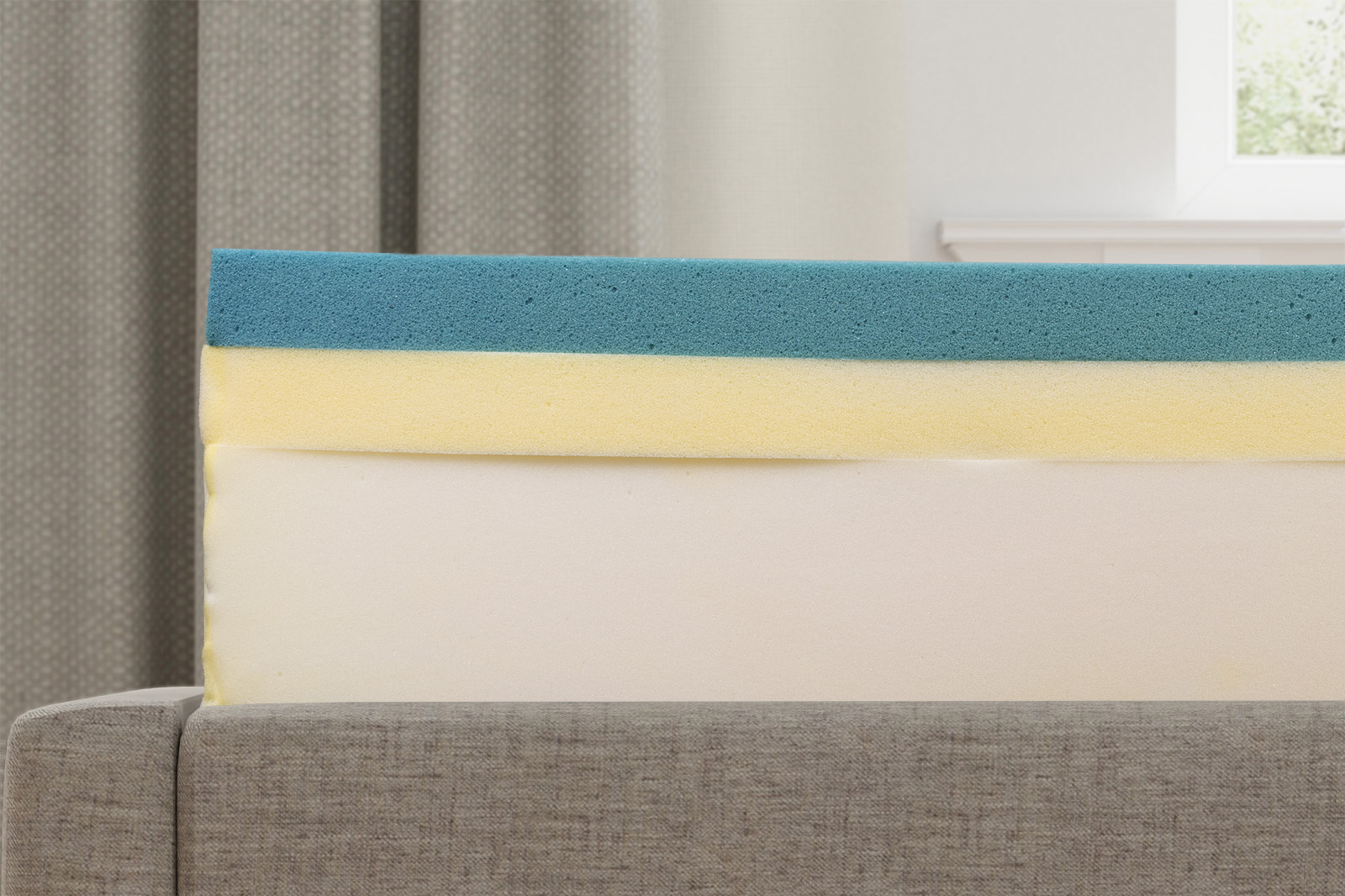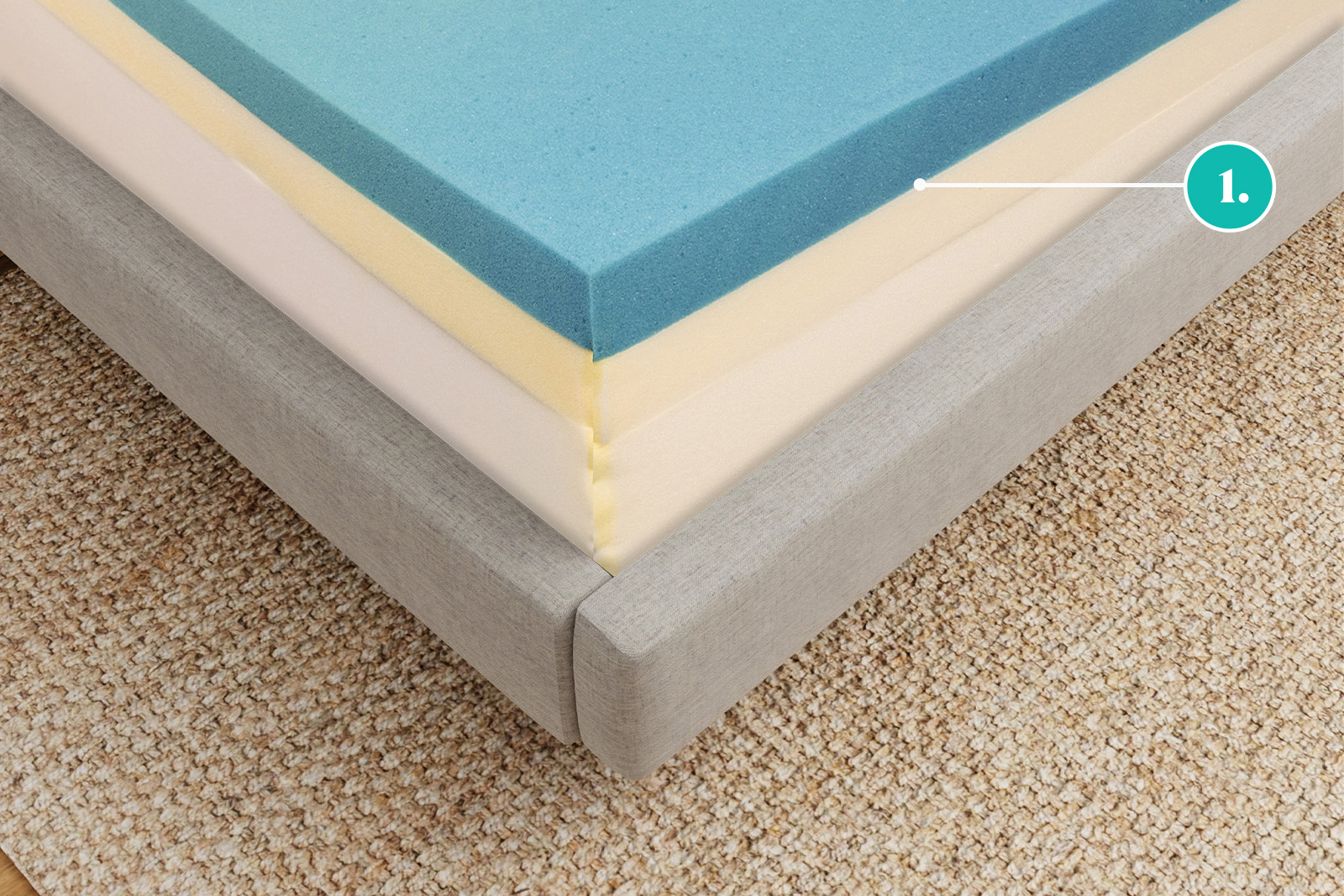 - 1st Layer: 2″ of gel-infused foam that contours to your body and helps draws heat away your body.