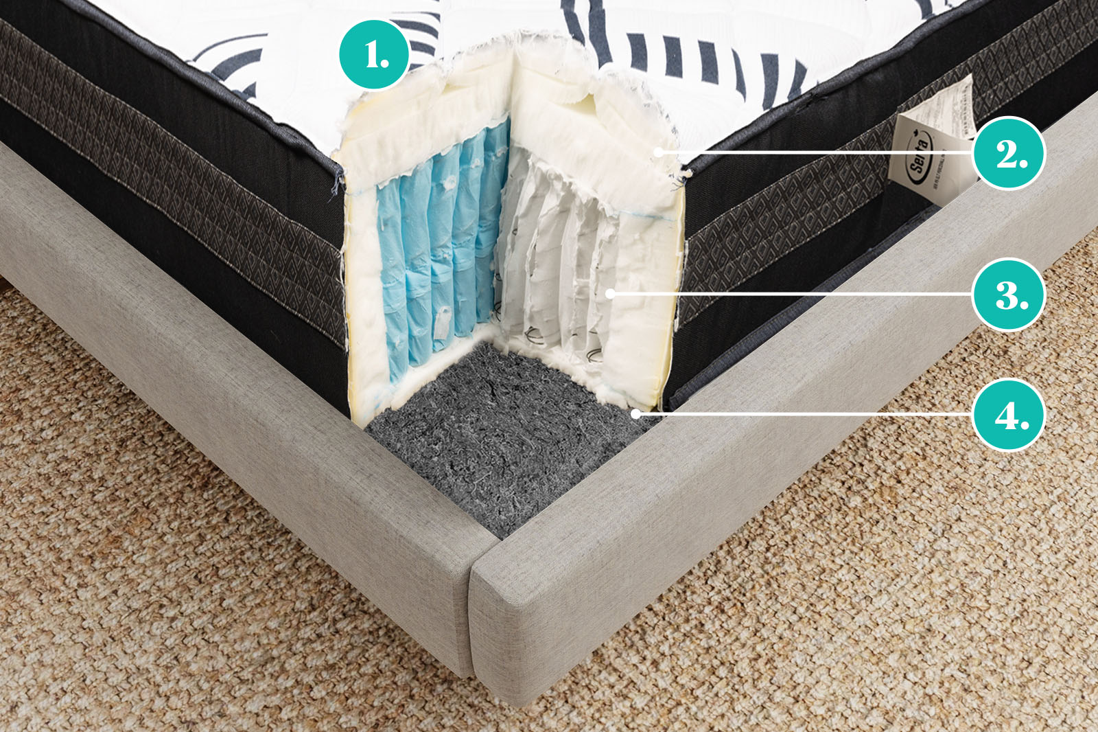 - 2nd Layer: 2" of relatively dense foam cushions the pocketed coils so you don't feel them as you move around.