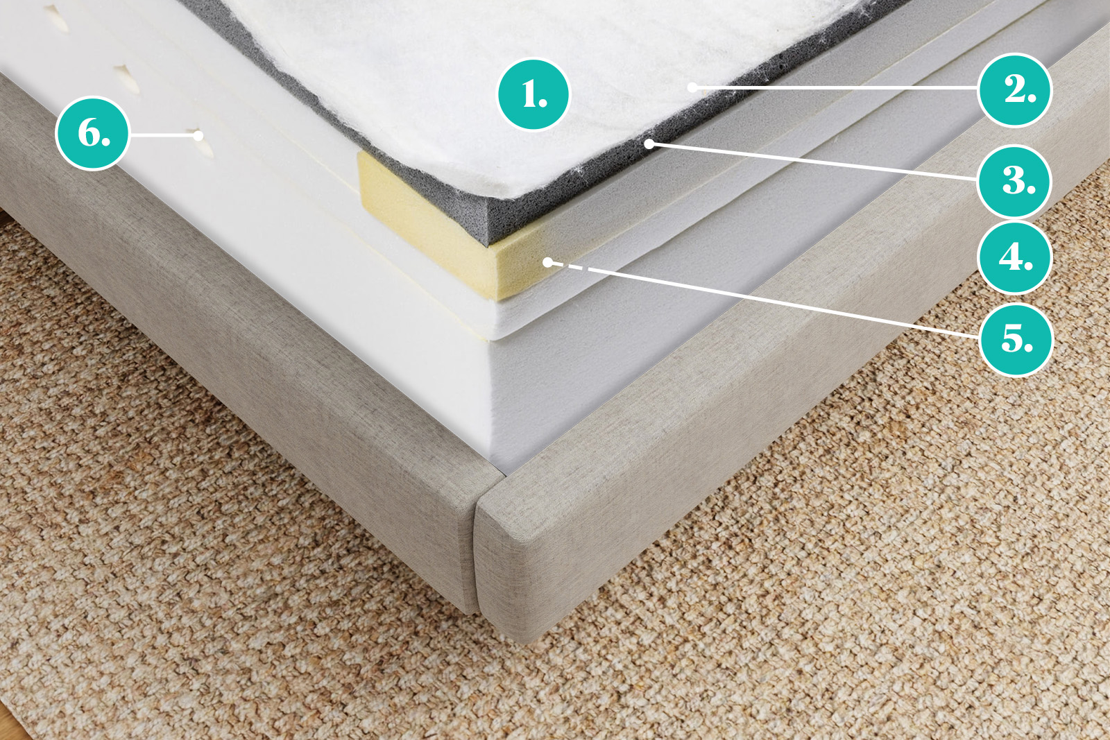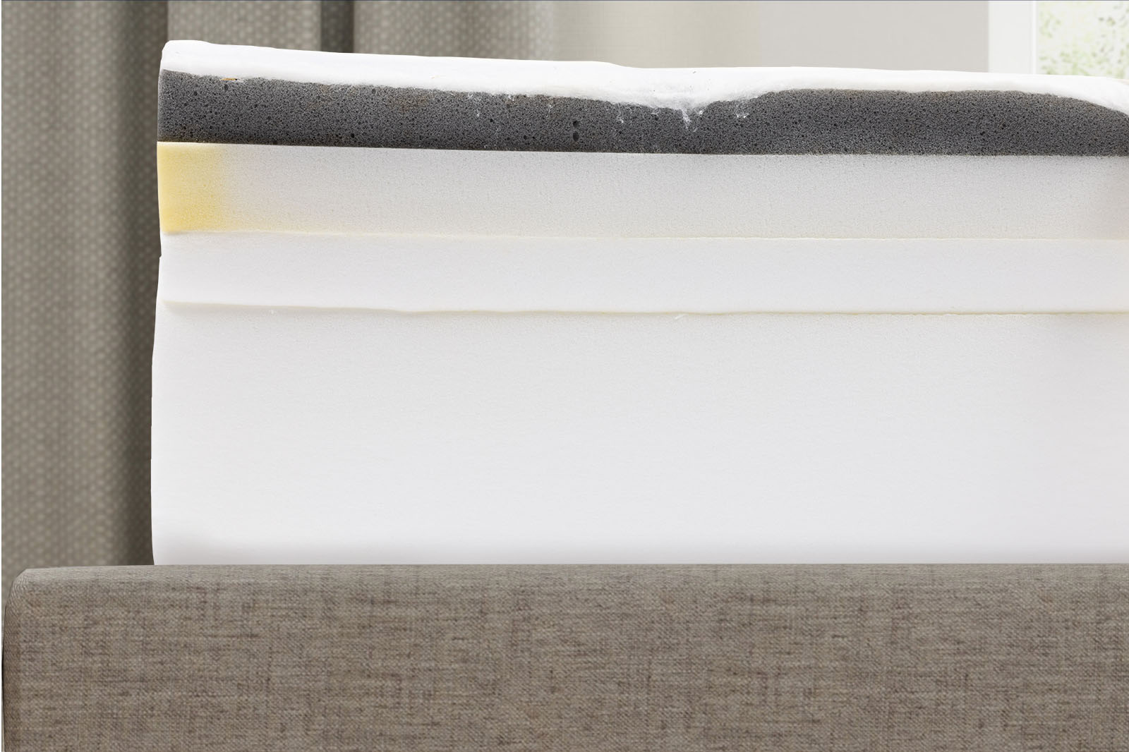 - Layer 2: 2.5″ of graphite-infused Simbatex open-cell foam that promotes airflow, and helps regulate body temperature.