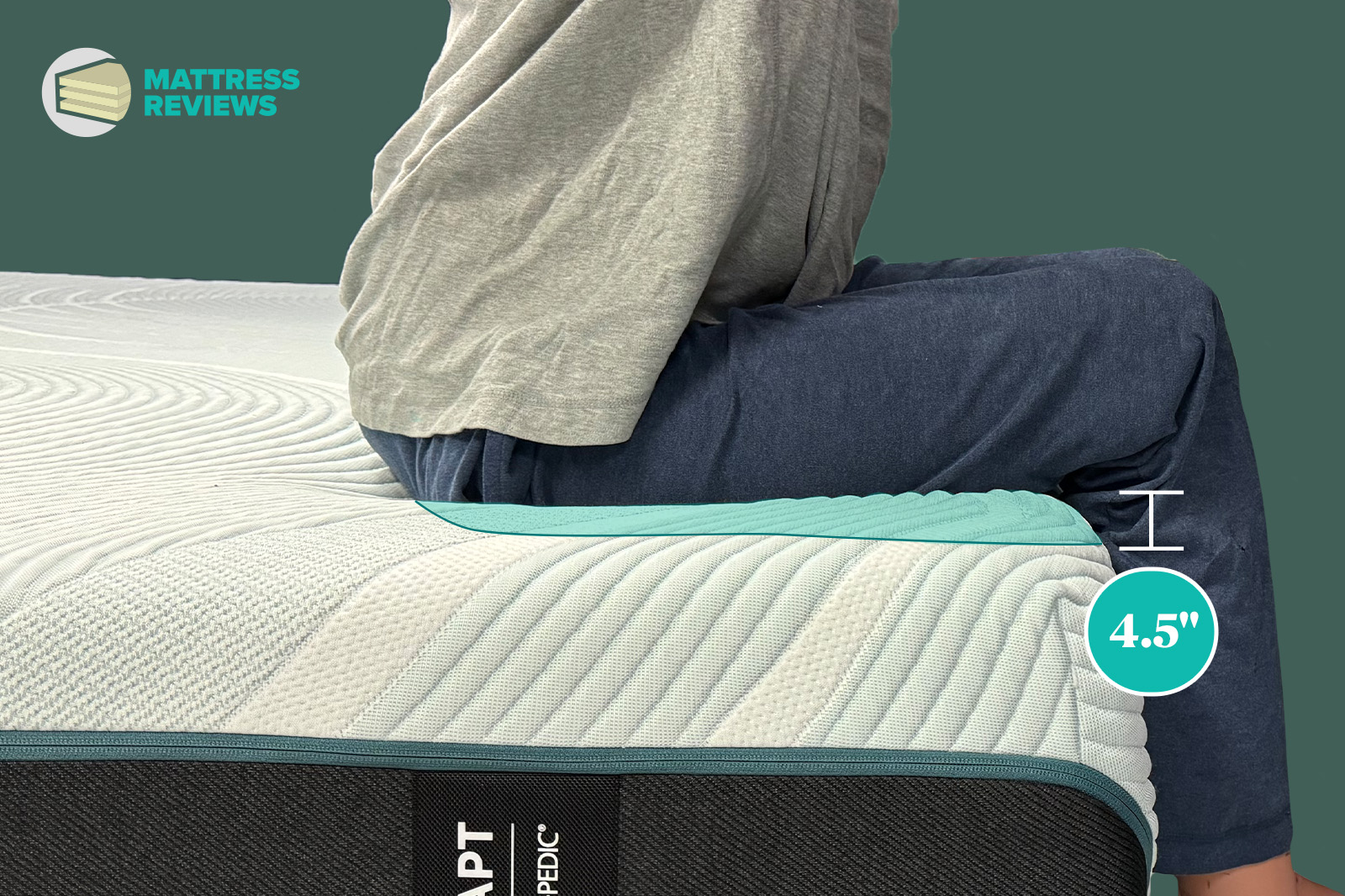 The Tempur-Pedic ProAdapt Teal mattress stands 11″ tall and comes in three firmness levels: Blue (soft), Teal (medium), and Orange (firm). We tested the Teal version for this review. Third-party testing found it to be firmer than advertised.